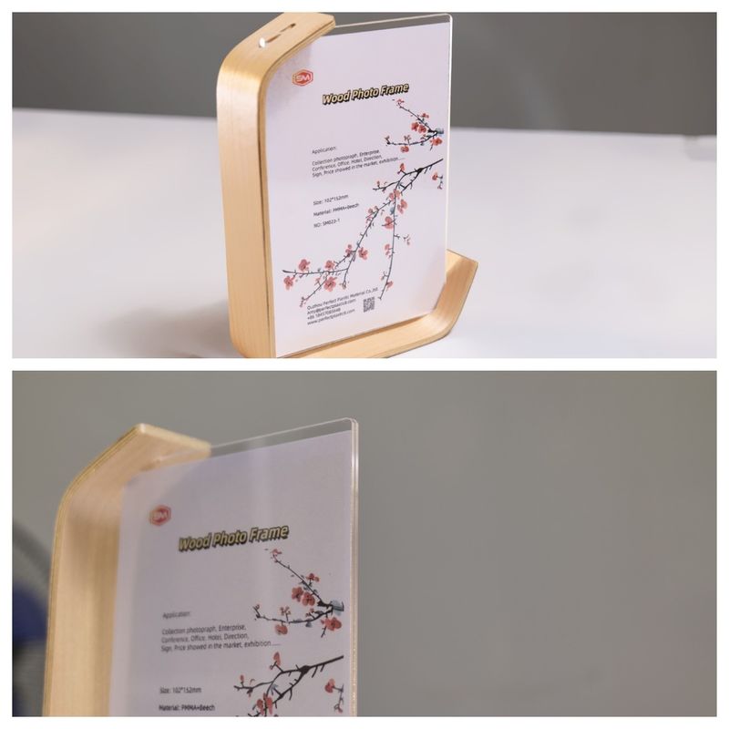 3. inserir a folha acrílica na fenda da base de madeira.Existem dois tipos de bases de madeira: